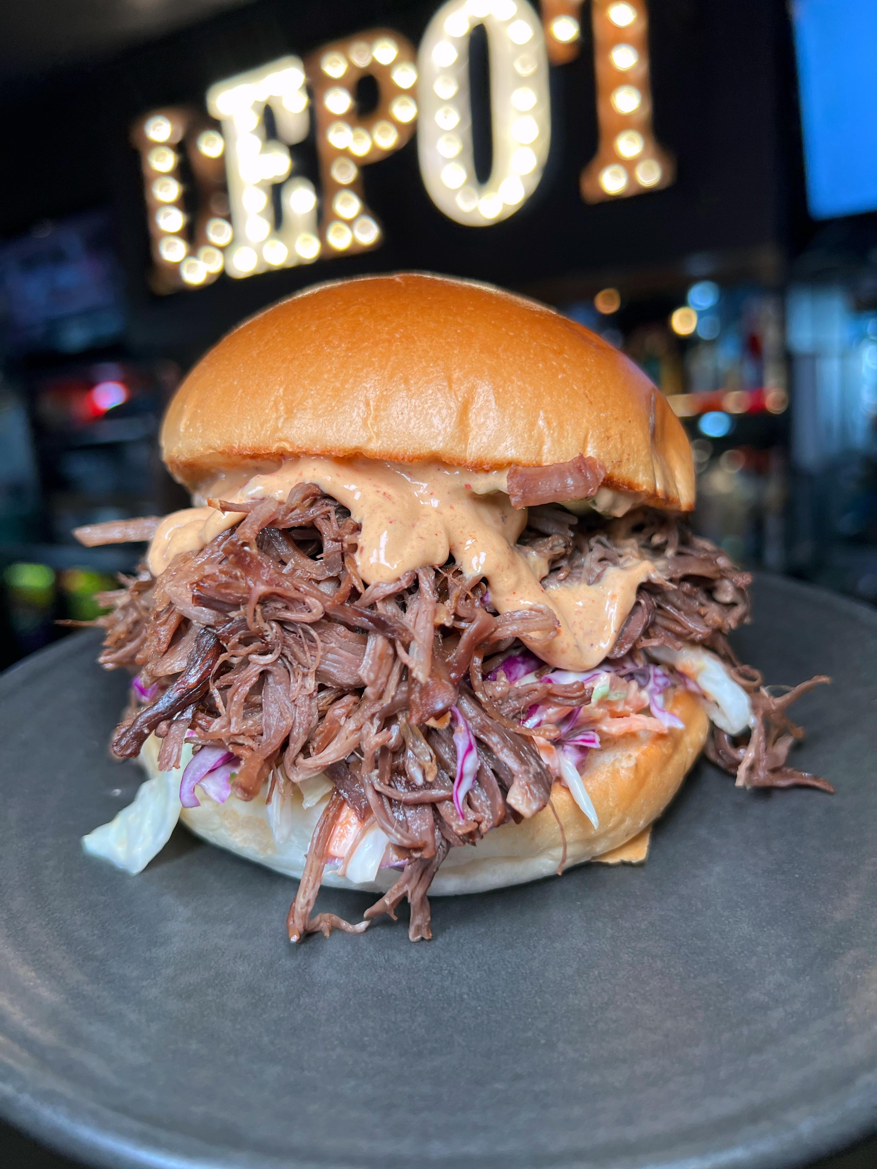 hand pulled brisket, slaw, chipotle mayo and pickles
